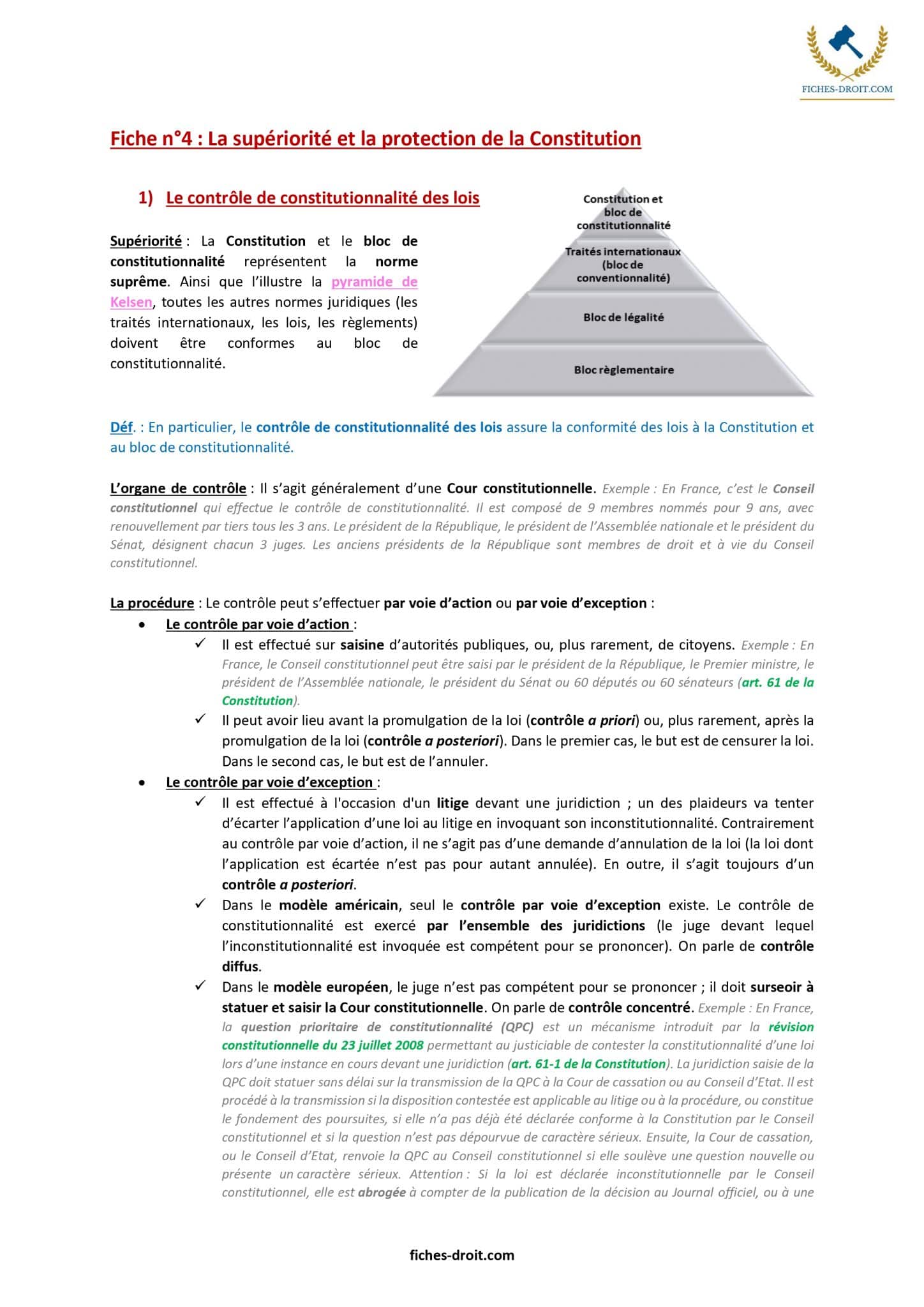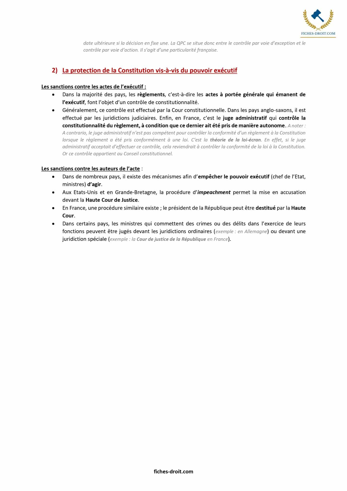 Les Fiches de droit constitutionnel sont :