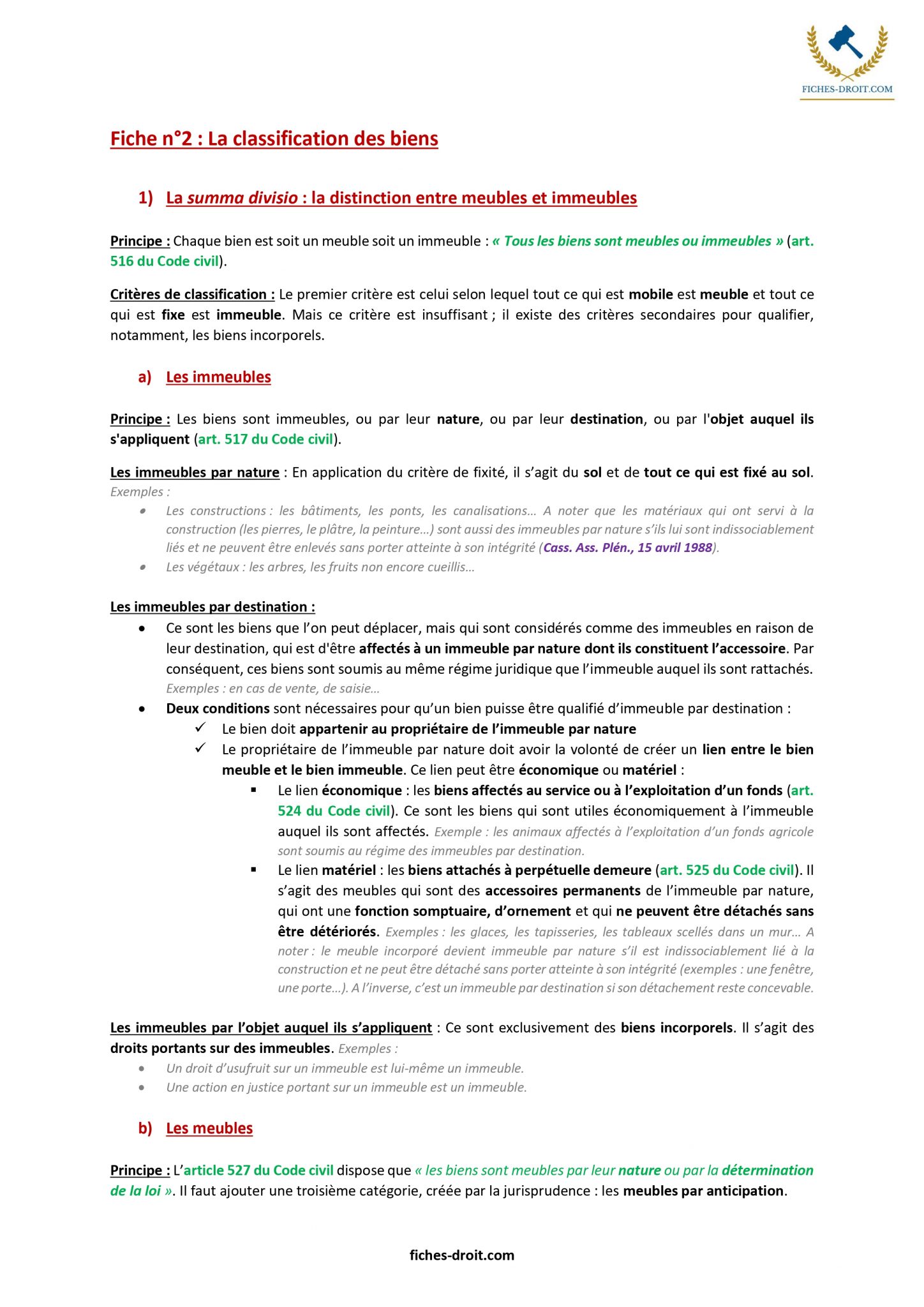20 fiches claires et synthétiques pour avoir de bonnes notes en droit des biens et réussir vos examens (partiels, galops d'essai, CRFPA...).